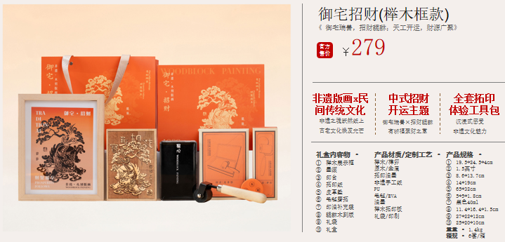 御宅招财(榉木框款)非遗版画礼盒可定制送客户商务高端礼品杭州礼品