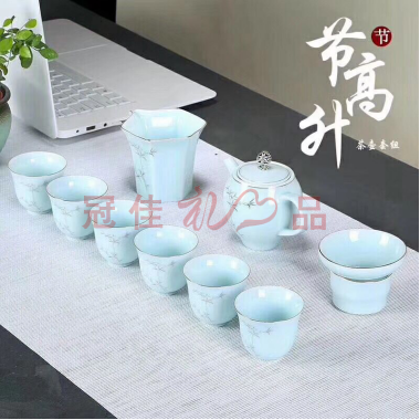 青瓷功夫茶具套装家用中式简约精品陶瓷茶杯茶壶送客户广告礼品可定制