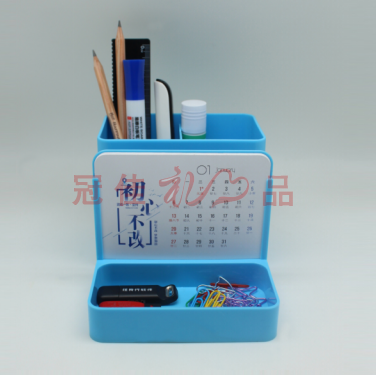 2019年猪年塑胶台历多功能收纳日历创意简约办公桌面多功能笔筒台历企业广告定制